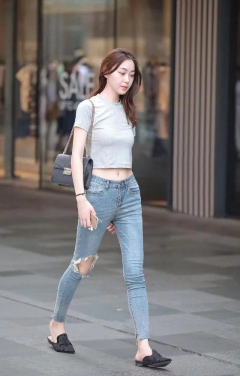 於日常穿搭,時尚女生們從不隨波逐流,她們往往只會選擇那些能夠穿搭出美感,而且自己又很喜歡的衣服。就拿夏天來說,面對着日漸攀升的氣溫,不少女生都早早地換上了短裙和短褲。但對於一些偏愛牛仔褲的女生來說,褲子上加點破洞,不但清涼透氣,還能讓造型顯得時尚個性。 這位小姐姐就是如此,她選擇了破洞牛仔褲的裝扮,在眾多的牛仔褲的款式當中,有破洞的牛仔褲可以說是不少年輕女生偏愛的款式,因為它所能帶來的個性感,是其它很多單品所無法比擬的。而且這條牛仔褲還是修身的褲型,從而就使得小姐姐細長的腿部線條很輕鬆的就得到了展現。 而且除了破洞以外,這條牛仔褲還有着不規則的褲腳設計,這樣一來,不但整條褲型更具細節感,同時在造型氣質方面也能因此而更顯個性。 上衣的部分,小姐姐則是搭配了一件修身顯瘦的短款T恤,從而就能讓小姐姐輕鬆秀出腰部線條。而且由此也可以看出,這位小姐姐是很會穿搭的,她很好的利用了衣服的款式來展現自己的身材優勢。 在鞋子的搭配選擇上,這位小姐姐則是搭配了一雙黑色的尖頭低跟鞋,這雙鞋子穿搭起來固然低調舒適,但卻對外在美的提升沒有什麼明顯的幫助,而從小姐姐的身材氣質方面來看的話,高跟涼鞋無疑是很好的選擇,不但能夠修飾身材,還可以讓小姐姐的整體造型多出幾分優雅的氣韻。 而且從整體的穿搭效果來看的話,小姐姐選擇了修身的牛仔褲搭配短款T恤的裝扮,不但休閑個性,而且還足夠的清爽靚麗。由此可以看出,夏日的穿搭不僅僅只有短裙和短褲,只要時尚女生們肯花費時間和精力在日常的穿搭上,就能夠讓自己的造型擺脫都市街頭那些千篇一律的風格,進而展現出自己專屬的時尚美。 分享至