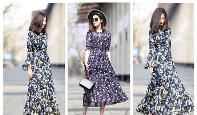 若不喜歡印花的花哨,可以用純色連衣裙代替。長度盡可能選擇長款的,既安全又仙氣十足。這裏小編建議,選擇長裙的材質盡量選一些垂墜感比較好的款式。看起來會減齡又顯瘦,還有些優雅小浪漫,很時尚又好看。