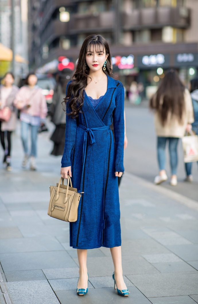連衣裙給人的感覺十分的淑女溫柔,打造出風格更是美得讓人無法抗拒,美女將這款弔帶裙穿的很有立體感,可見身材之好,這款單品不僅穿出來優雅與氣質,還穿出了性感之美。