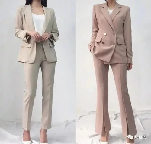 氣質溫柔的淺色系西裝,真的是誰穿誰美!值不過淺色系不如深色系西裝,帶來的關注度高。想要化身辦公司焦點,你可以借鑒這組look,選擇一件復古優雅的酒紅色、墨綠色、咖啡色等很有質感的西服套裝,只需要內搭簡潔普通的上衣,就能走哪都是焦點。除了色彩,福特的裁剪設計,也能為造型加分。就說這組look,喇叭褲的西服套裝,上身顯高挑又不失chic風,妥妥的吸睛!