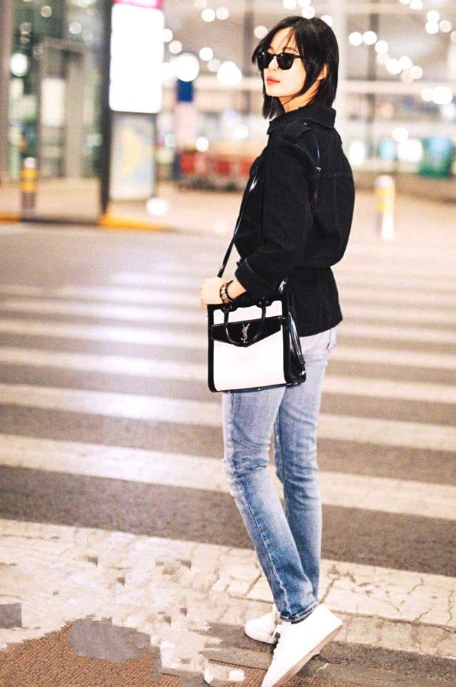 辛芷蕾的身材比例非常好,而且不會顯得太過於骨感,穿上貼合腿型又不束縛緊的牛仔褲,既顯高又顯瘦,還能顯腿長。腳踩一雙小白鞋,肩上挎着一個黑白撞色的挎包,整體造型簡約大氣又不失率性酷感!